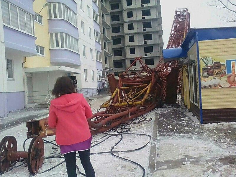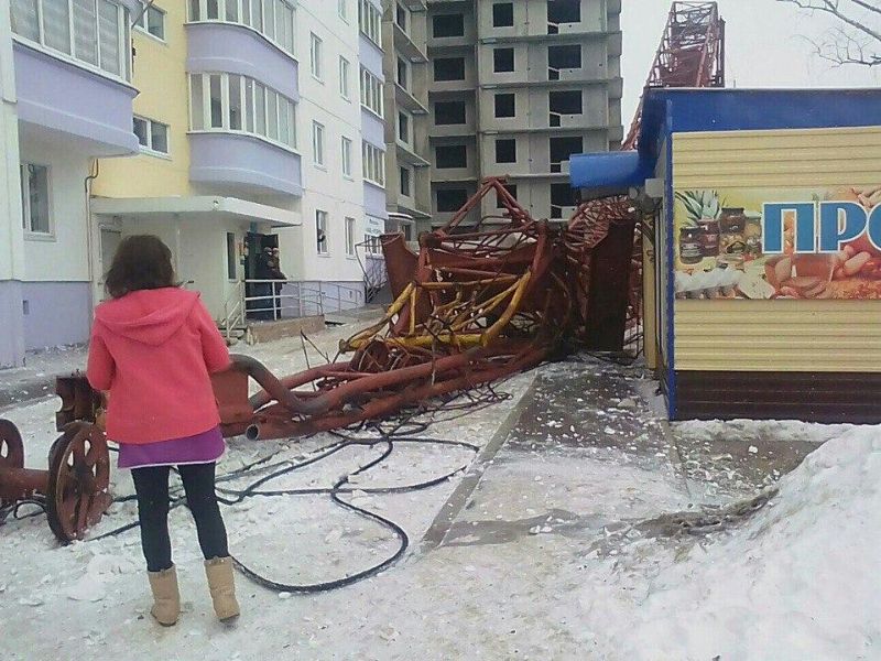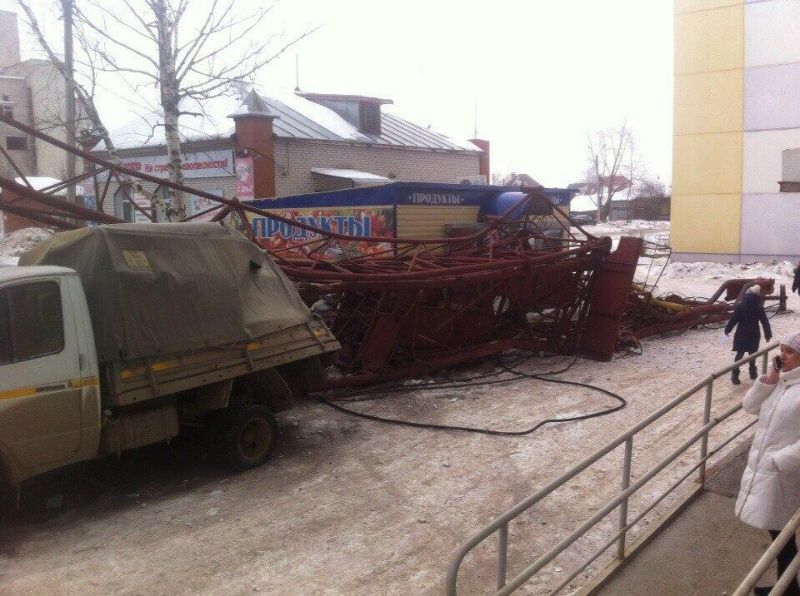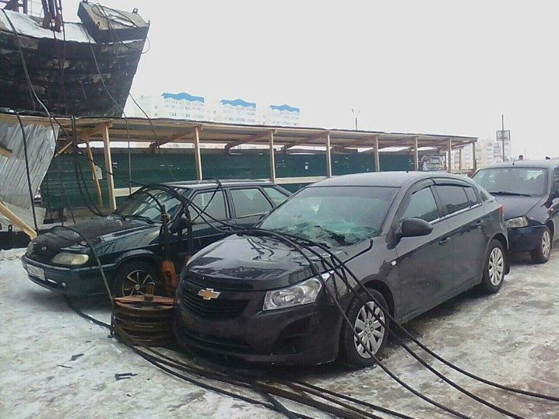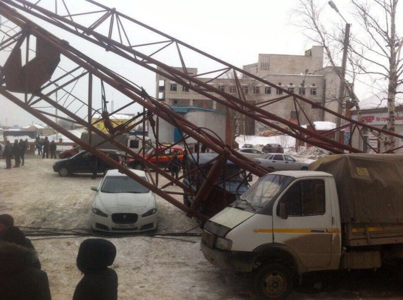 При проведении демонтажных работ на строительной площадке в городе Добрянка Пермского края упал башенный кран. К счастью, никто не пострадал, а вот владельцам четырех машин не повезло - кран рухнул прямо на припаркованные авто.