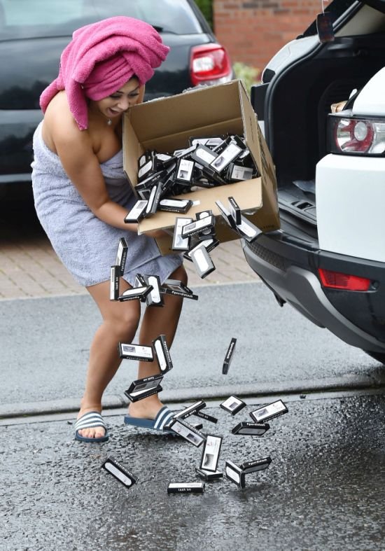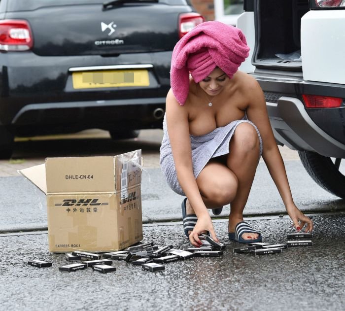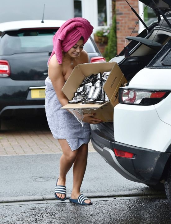 Вездесущие папарацци подловили звезду британского реалити-шоу Geordie Shore Хлое Ферри (Chloe Ferry) у ее дома в очень пикантном наряде. Девушка вышла на улицу в двух полотенцах, одно из них было обернуто вокруг ее тела, а второе она намотала на волосы. Доставая из машины большую коробку с накладными ресницами, Хлое выпустила ее из рук, в результате чего ей пришлось нагнуться. Само собой фотографы просто не могли упустить возможности сделать столь шикарные кадры.