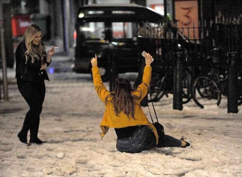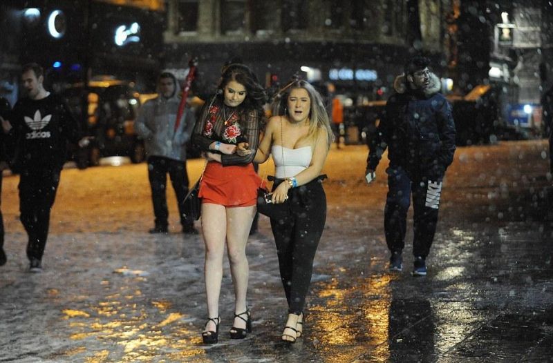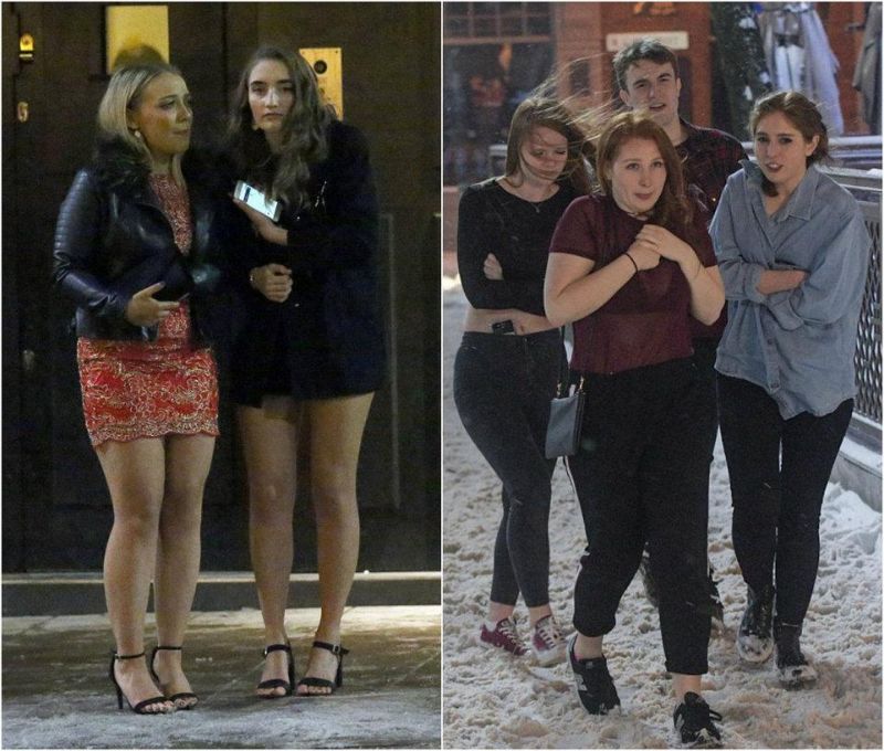 В Британии вовсю разгулялась непогода - народ кошмарят мороз, сильный ветер, снегопады и гололед. Однако по вечерам среди укутанных британцев можно увидеть тусовщиц в маечках и коротеньких юбочках, шагающих на каблуках по сугробам и льду. Этим любительницам увеселительных заведений и мороз нипочем.