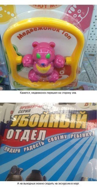 Детские игрушки - жесть! 14/01/2015 19:09 Необычные игрушки для детей способны довести до истерики даже взрослых. прикол, жесть, детские игрушки, фото, вынос мозга, истерика Юмор 0 Котейка 0 2 597