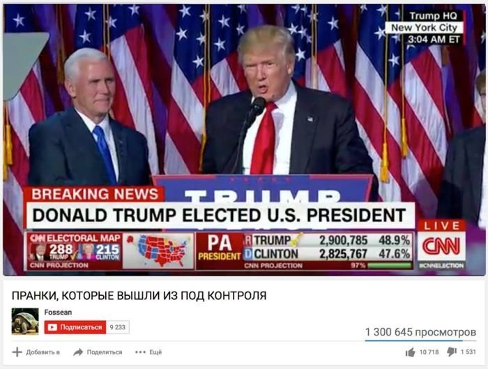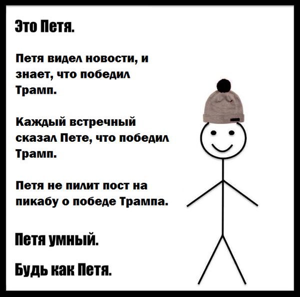 Реакция Интернета когда в США на выборах победил Дональд Трамп 10/11/2016 20:41 Выборы в США — главная новость последних дней, а победа Дональда Трампа вызвала целый шквал приколов и шуток от Интернет-пользователей по всему миру.Предлагаем вам несколько приколов на эту тему для поднятия настроения. Юмор 0 Котейка 0 2 671