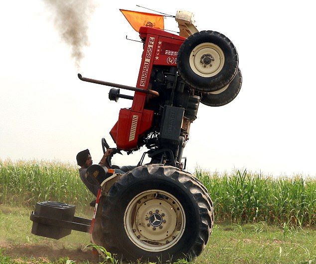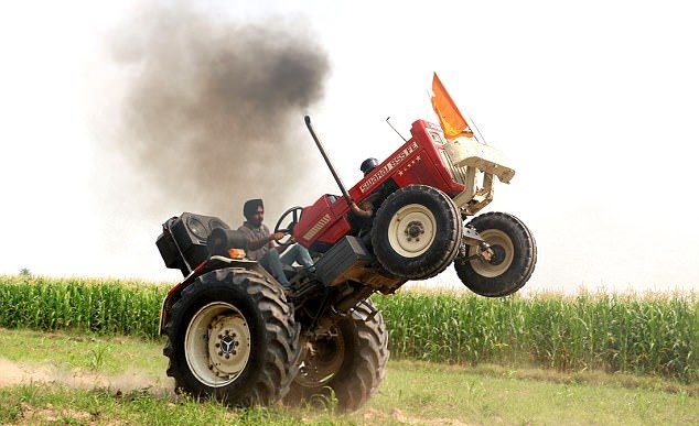 Индийский фермер научился делать трюки на тракторе
