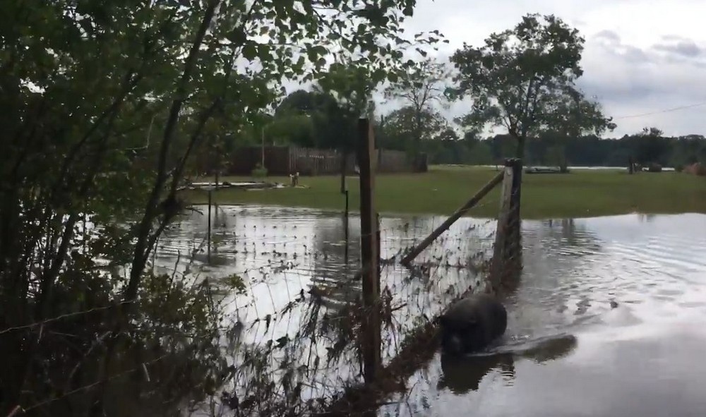 Мужчина приближался к затопленной ферме, как вдруг заметил свою любимую свинку Пэтти, он не смог сдержать слез. Еще выжили козел, осел и несколько лошадей. К сожалению 17 животных не пережили ураган Харви.