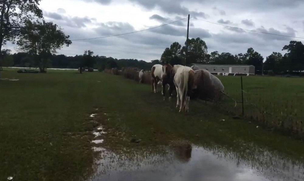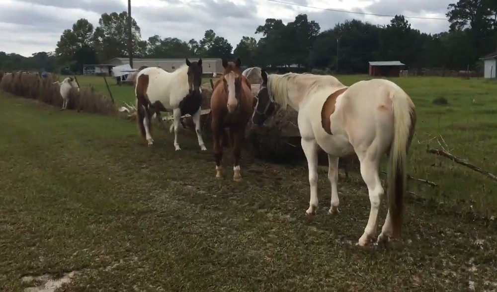 Учителю из Плам-Гров, штат Техас, Лестеру Морроу пришлось принять непростое решение и отказаться от большинства своих животных во время ураган Харви. Он с семьей уехал с фермы, забрав лишь собак, остальных животных разместил в максимально безопасных местах. Лестер вернулся через пару дней, он и не надеялся никого застать в живых.